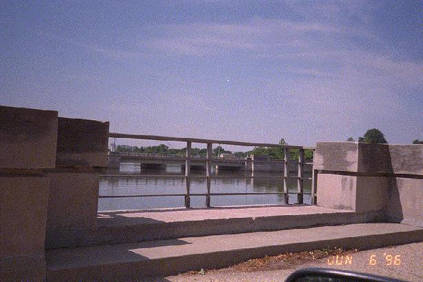 From the sidewalk as Rob and Edwin approach the bridge